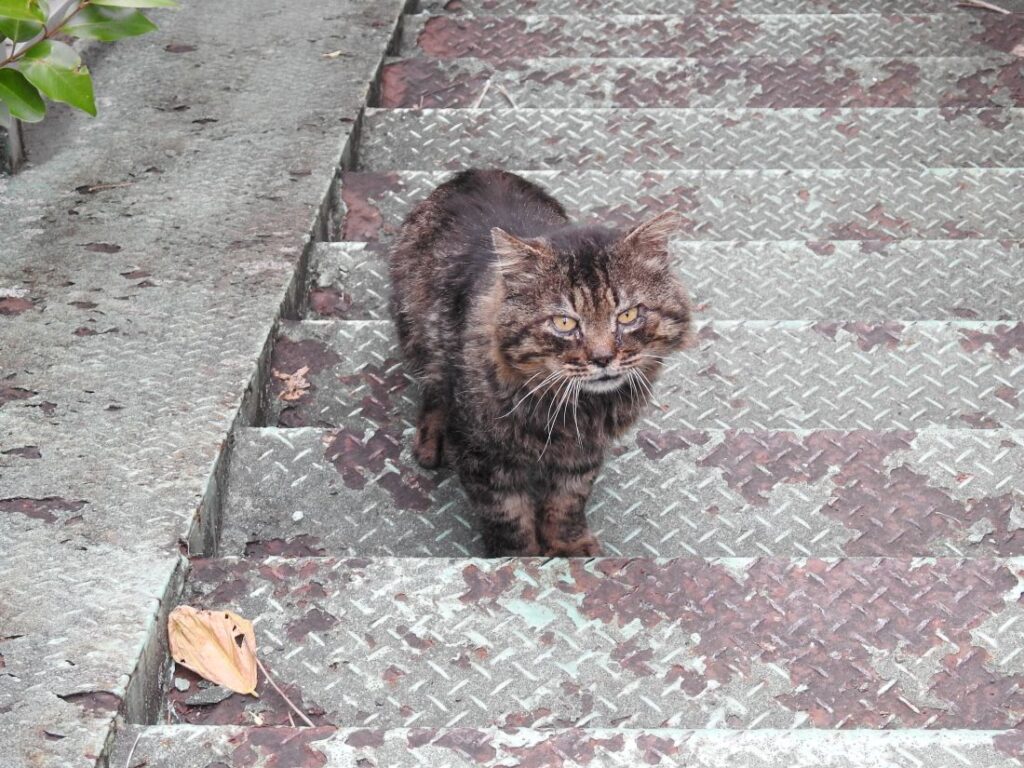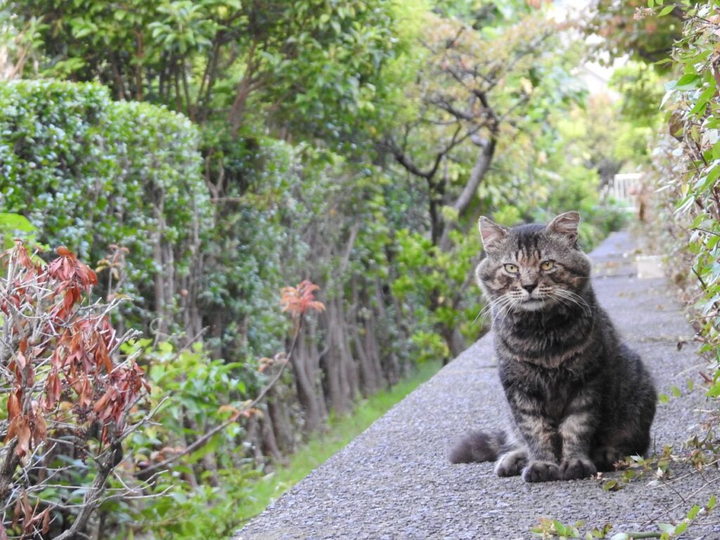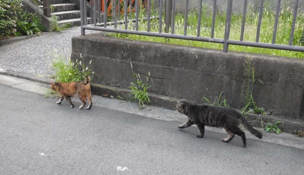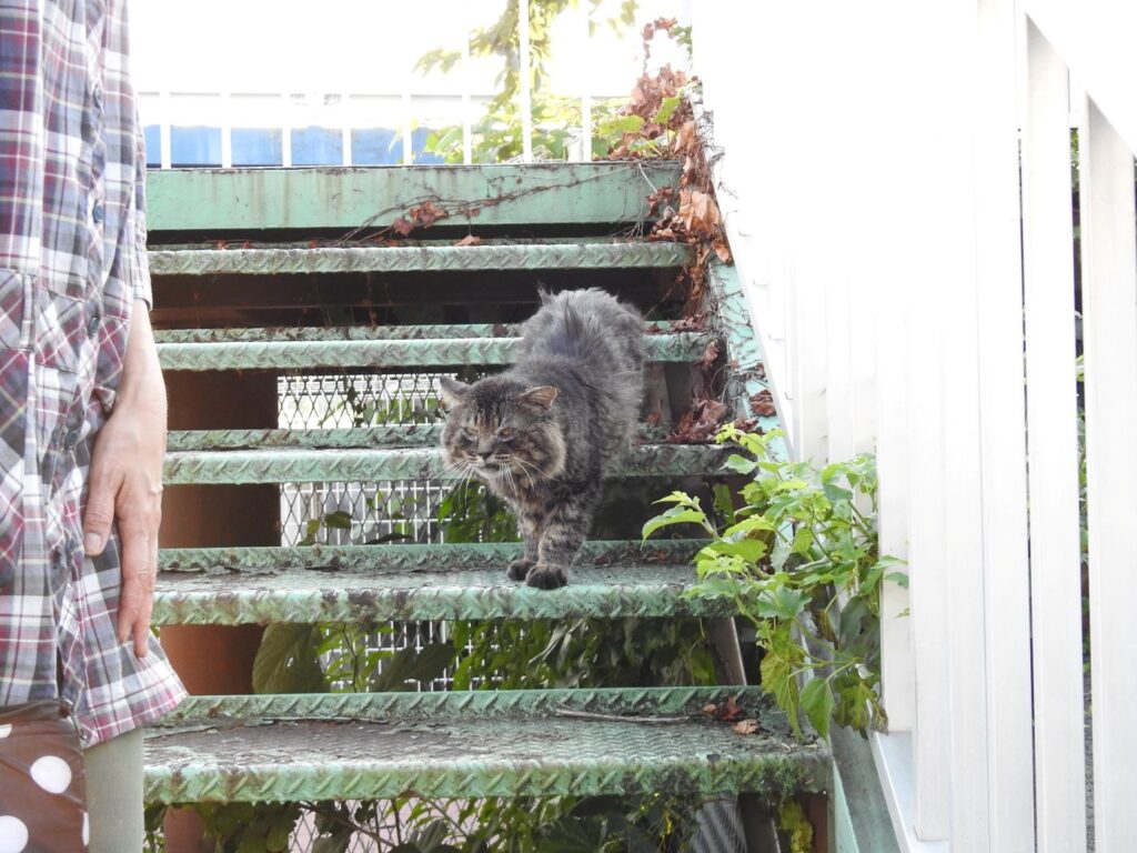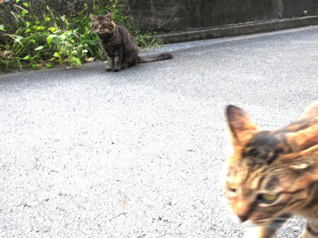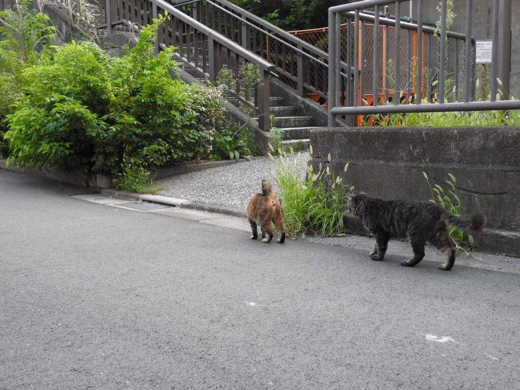 うちらを見つけると「ナオ~ン」と小さな声で呼びかけてから付いてきます。