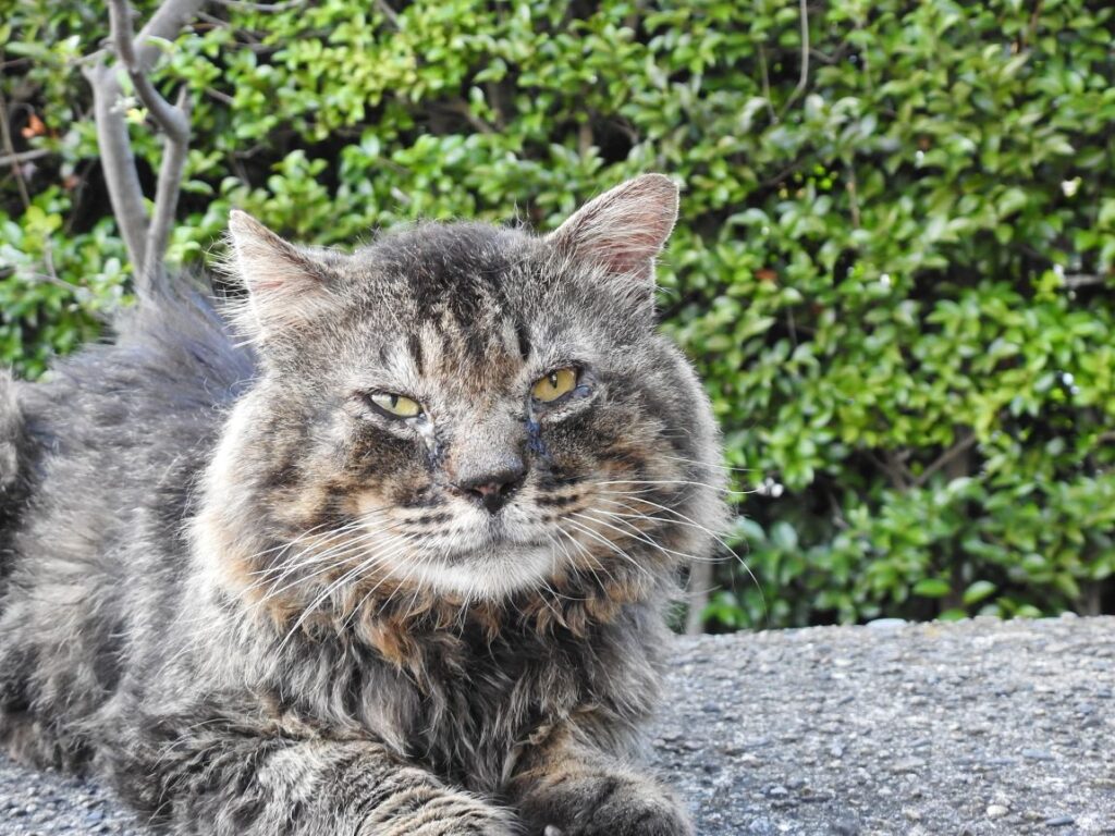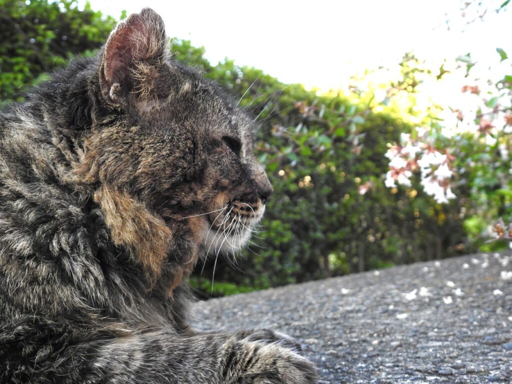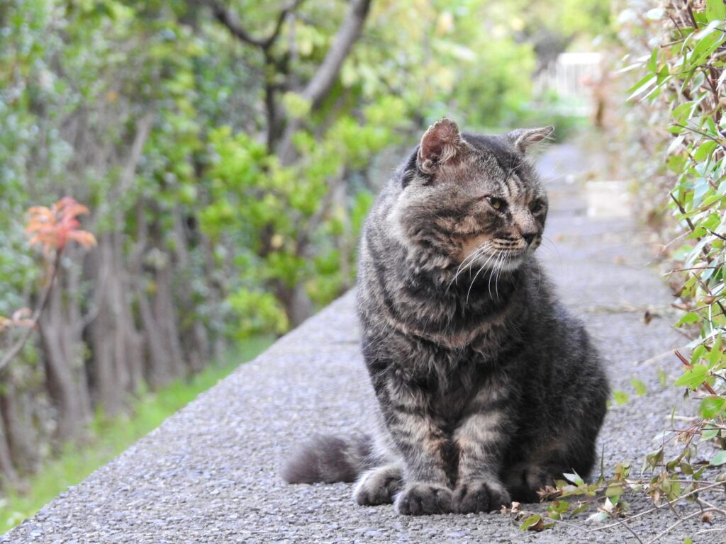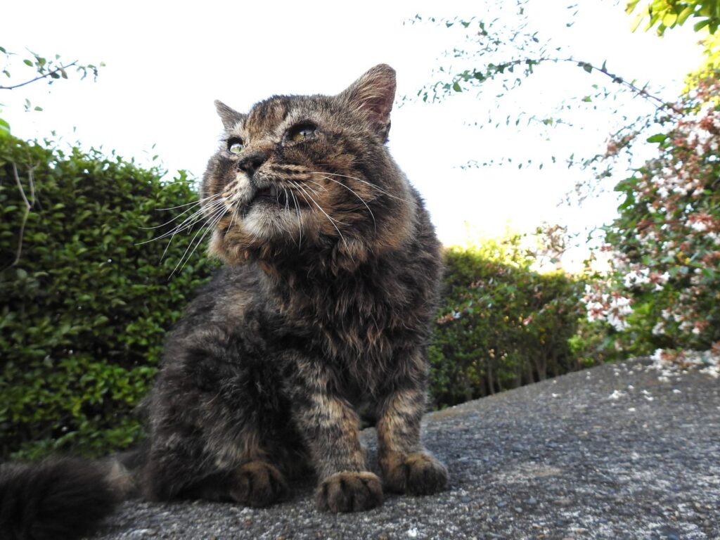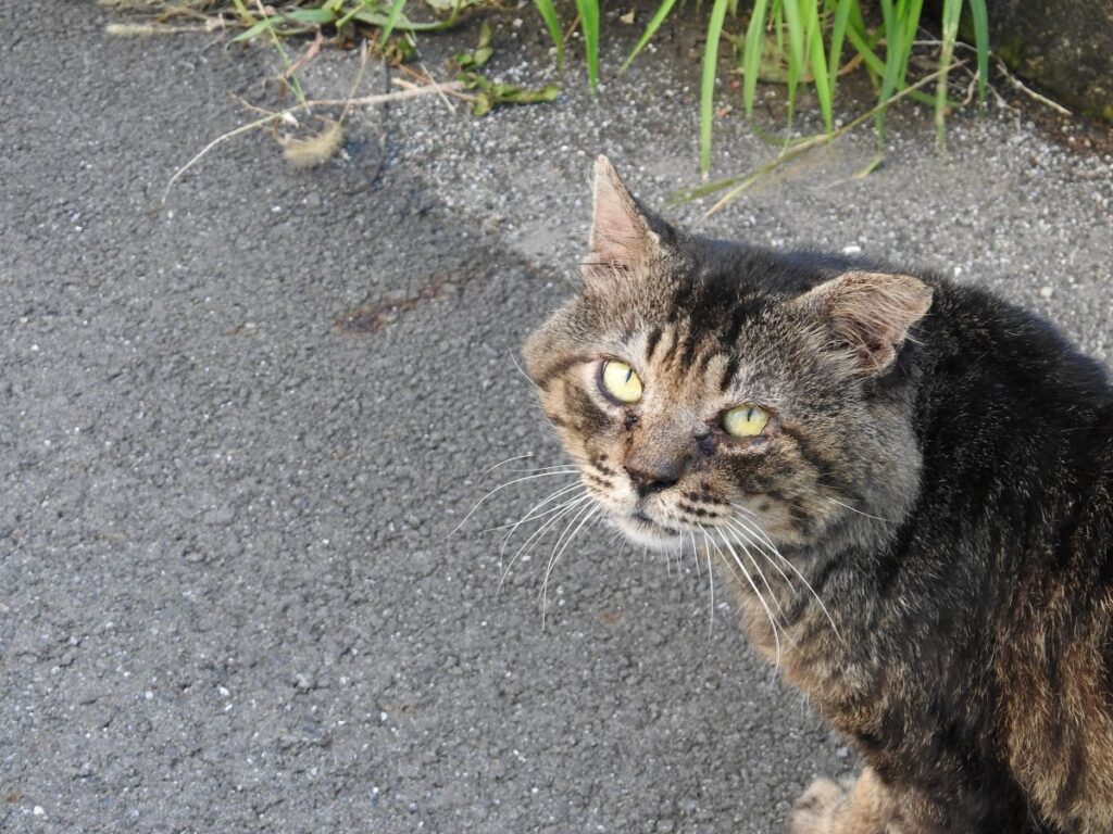 うちらを見つけると「ナオ~ン」と小さな声で呼びかけてから付いてきます。
